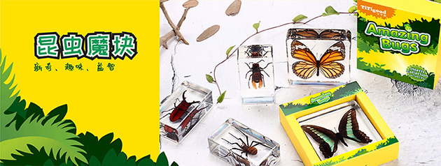 昆蟲魔塊系列產(chǎn)品,是由昆蟲包埋標本配套觀察工具組成。標本晶瑩通透、精致小巧,昆蟲自然真實、栩栩如生,激發(fā)孩子的無限好奇。通過對昆蟲標本的觀察、認知,培養(yǎng)孩子的興趣愛好、觀察能力和探索能力。